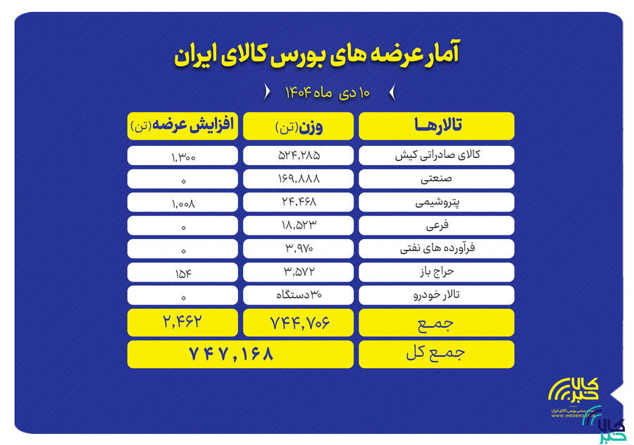 تالار فرعی میزبان عرضه ۱۸ هزار و ۵۲۳ تن محصول است.