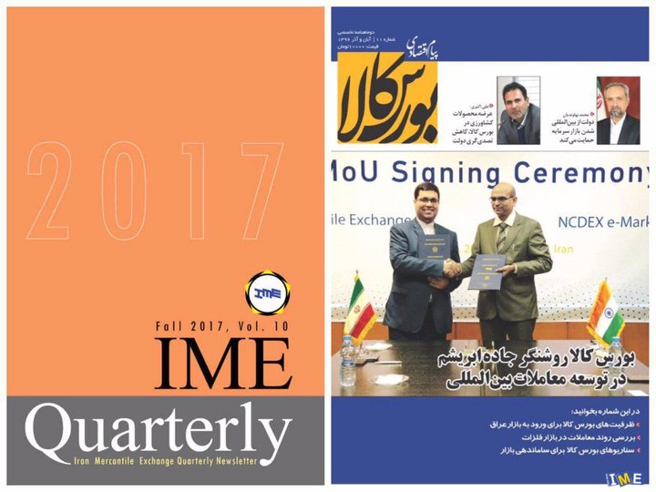 تهیه و انتشار فصلنامه انگلیسی این بورس به منظور آشنایی هرچه بیشتر مخاطبان بین المللی بورس کالای ایران و سرمایه گذاران خارجی در دستور کار قرار گرفت و در شماره جدید این فصلنامه مطالبی چون یادداشت سردبیر، پیام مدیر عامل، اخبار عمومی بورس کالای ایران، اخبار فعالیت های این بورس در فضای بین المللی و رویدادهای مرتبط با بازار فیزیکی بالاخص بخش کشاورزی و همچنین بررسی آمار معاملات در پاییز ۱۳۹۶ منتشر شده است.