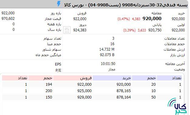 پس از بازگشایی نماد نخستین انبار پسته متعلق به شرکت طلای سبز زرند از سه شنبه هفته گذشته و معامله ۵۸۰۰ گواهی سپرده معادل ۵.۸ تن پسته در دو روز معاملاتی نخست، دقایقی پیش نماد معاملاتی دومین انبار پسته متعلق به شرکت سبز دانه کویر با نماد سبزدانه ۹۹۰۸ (پست ۹۹۰۸-۰۴) بازگشایی شد. به گزارش «کالاخبر»، اطلاعات مربوط به انبارها در سایت بورس کالای ایران به آدرس www.ime.co.ir و سفارش ها و قیمت های معاملاتی در بخش " بورس کالا" قیمت " گواهی سپرده" در سایت www.tsetmc.com برای عموم قابل مشاهده است.