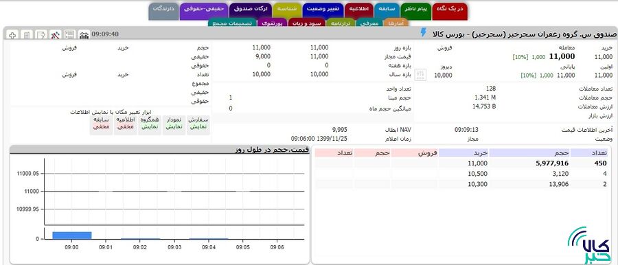 تابلوی معاملات نشان می دهد از ابتدای معاملات تاکنون (ساعت 9 و 15 دقیقه) ، بیش از ۹ میلیون و ۵۰۰ هزار واحد این صندوق معامله شده و با توجه به استقبال خوب سرمایه گذاران، معاملات متعادلی در این نماد در جریان است.