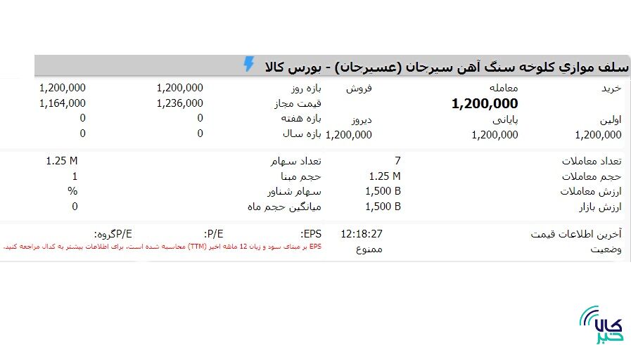 به گزارش «کالاخبر»؛ شرکت توسعه فرآوری صنایع و معادن ماهان سیرجان که امروز در نماد "عسیرجان" اقدام به انتشار اوراق گواهی سلف کرده بود موفق شد تعداد یک میلیون و ۲۵۰ هزار قرارداد را با قیمت یک میلیون و ۲۰۰ هزار ریال در هر قرارداد صد کیلوگرمی به فروش برساند که عرضه اولیه این اوراق از طریق شرکت کارگزاری تامین سرمایه نوین انجام شد.