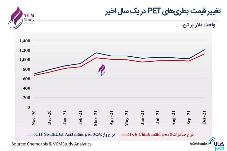 قیمت پلی‌اتیلن ترفتالات پس از ثبات یک ساله، ماه گذشته حدود ۲۰ درصد افزایش داشته است. این رشد قیمتی به افزایش تقاضا و ادامه محدودیت عرضه در چین مربوط است.