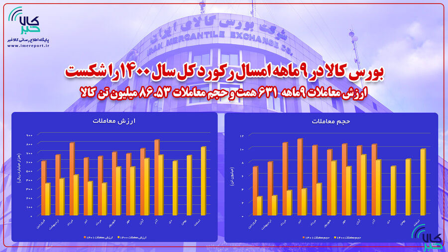 به گزارش کالاخبر ، بورس کالای ایران سال گذشته در رکوردی تاریخی معامله ۷۶.۱ میلیون تن کالا به ارزش ۶۳۰ همت را به ثبت رساند تا همه رکوردهای قبلی از سال ۱۳۸۶ (زمان تاسیس) تا ۱۴۰۰ جابه جا شود اما روند پرشتاب بورس کالا در مسیر توسعه باعث شد تا ارقام تاریخی این بورس در ۹ ماهه امسال تغییر کند و در رکوردی جدید، علاوه بر حجم، ارزش معاملات بازار فیزیکی ۹ ماهه از کل معاملات سال ۱۴۰۰ سبقت بگیرد.