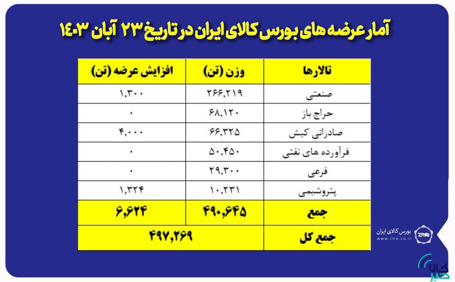 تالار پتروشیمی و فرآوردههای نفتی میزبان عرضه ۶۲ هزار و ۴ تن مواد پلیمری و شیمیایی است.