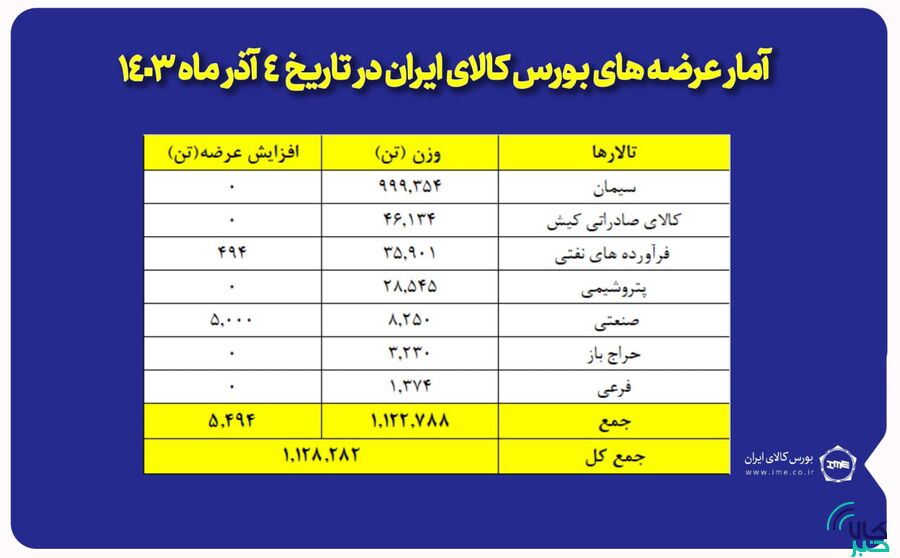 تالار فرآوردههای نفتی و پتروشیمی هم شاهد عرضه ۶۴ هزار و ۹۳۹ تن مواد پلیمری، شیمیایی، اسلاک واکس، پارافین واکس، گوگرد و قیر است.