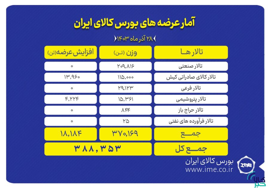 همچنین ۲۹ هزار و ۱۲۳ تن انواع کالا نیز در بازار فرعی روی تابلو میرود.