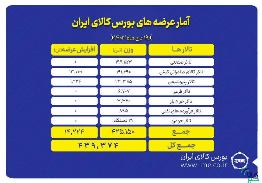 همچنین ۶ هزار و ۷۰۶ تن انواع کالا نیز در بازار فرعی روی تابلو میرود.