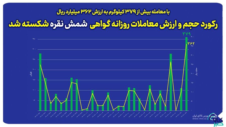 پس از رکوردشکنی های معاملات مبتنی بر طلا در بورس کالای ایران، نوبت به نقره رسیده است به طوریکه در روز ۲۳ دی ماه و با استقبال سرمایه گذاران، رکورد حجم و ارزش روزانه معاملات گواهی سپرده شمش نقره شکسته شد.