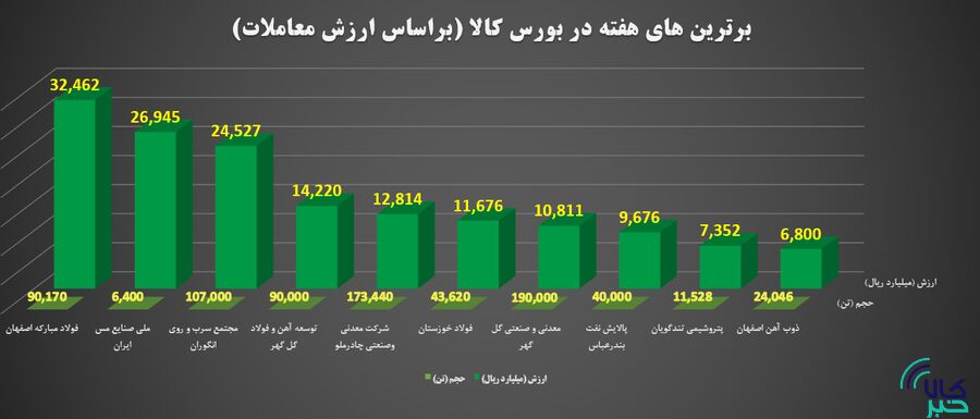 فولاد مبارکه اصفهان با معامله ۹۰ هزار و ۱۷۰ تن آرگون و ورق به ارزش ۳ هزار و ۲۴۶ میلیارد تومان در رتبه نخست ایستاد.