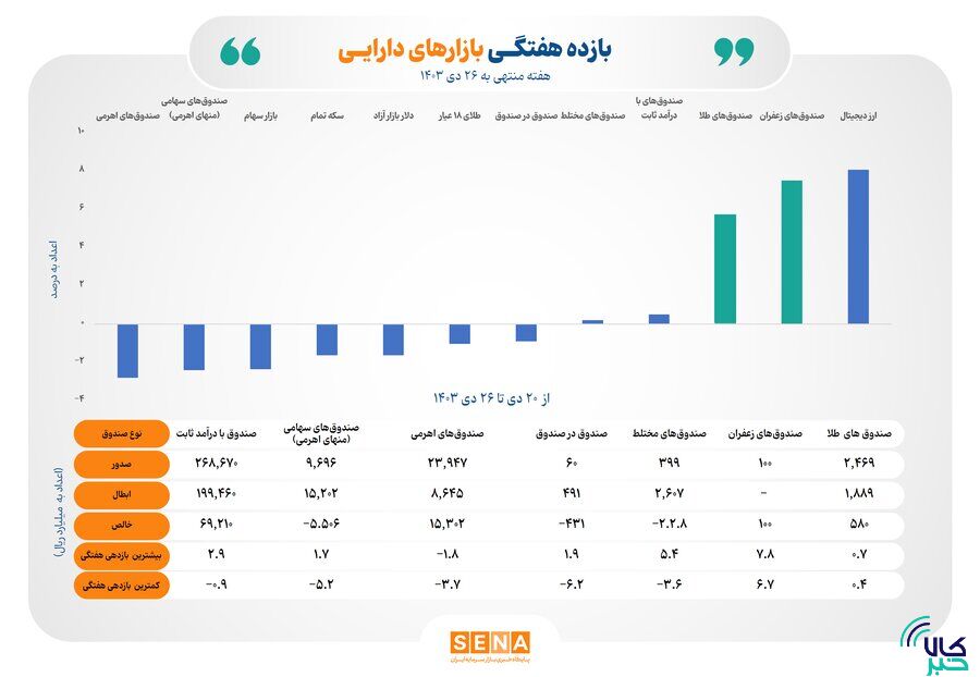 به گزارش کالاخبر،در این هفته فقط بازار پرریسک ارز دیجیتال بازدهی بالاتر از صندوقهای طلا و زعفران داشت.