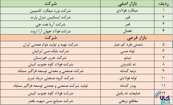 همچنین کالاهای زیر در بازار فرعی پذیرش شدند:
