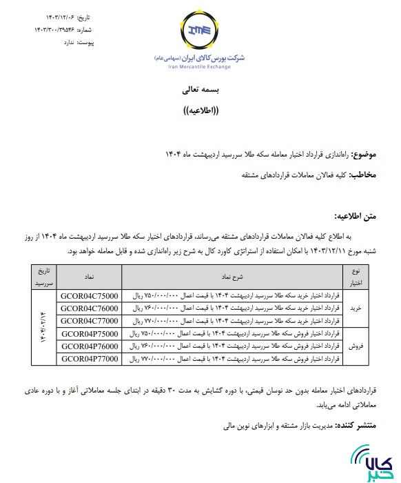 به گزارش کالاخبر،بر اساس این اطلاعیه قراردادهای اختیار معامله سکه طلا سررسید اردیبهشت ١٤٠٤ از روز شنبه ۱۱ اسفند ماه با استفاده از امکان استراتژی کاورد کال راه اندازی شده و قابل معامله خواهد بود.