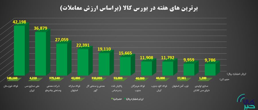 فولاد خوزستان با معامله ۱۶۵هزار و ۱۶۰تن آهن اسفنجی، آرگون، تختال و شمش به ارزش ۴ هزار و ۲۱۹ میلیارد تومان در رتبه نخست ایستاد.