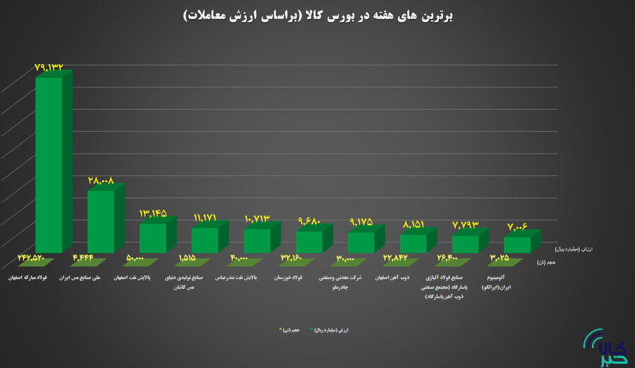 به گزارش کالاخبر ، برترین های بورس کالای ایران درهفته منتهی به ۲۷ تیر ماه براساس ارزش فروش شرکت ها در بازار فیزیکی به شرح زیر است: