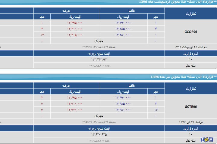 تابلوهای بازار قراردادهای آتی و اختیار معامله سکه طلا، اطلاعات بازار واقعی را به صورت لحظه به لحظه و بر خط نمایش می دهد، به طوری که اطلاعاتی از قبیل عرضه و تقاضا، حجم معاملات انجام شده، آخرین قیمت، کمترین و بیشترین قیمت، قیمت پایانی به صورت آنلاین قابل رویت است.