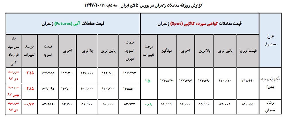 • جدول روزانه معاملات زعفران در بورس کالا ( ۹ دی ماه ۹۷)