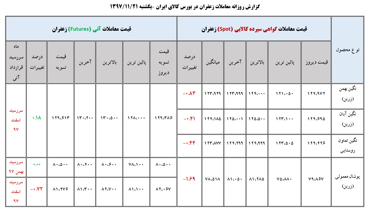 • جدول روزانه معاملات زعفران در بورس کالا ( ۱۳ بهمن ماه ۹۷)
