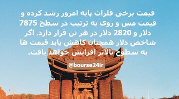روز جمعه ۲۳ آذر ماه ۱۴۰۳، قیمت مس در «LME» نسبت به روز معاملاتی پیشین، با افت ۴۹ دلاری همراه شد و به هشت هزار و ۹۸۹ دلار رسید.